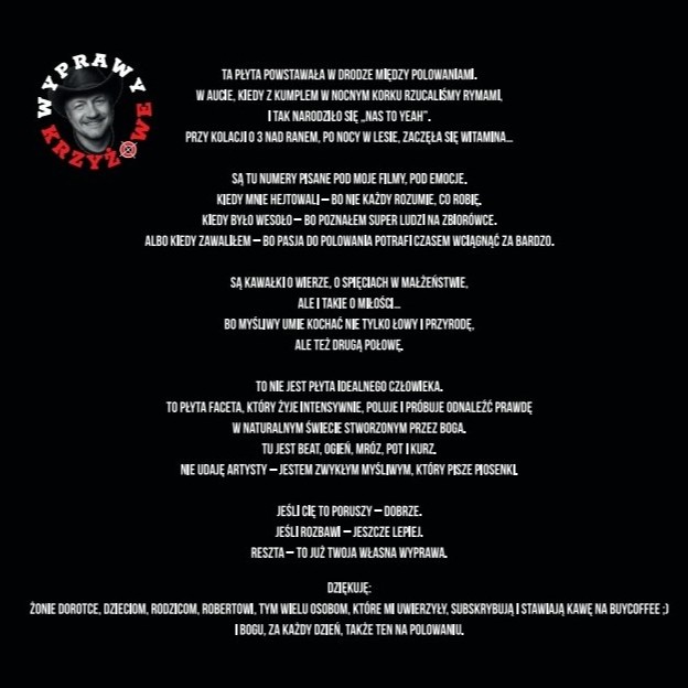 Możesz dorzucić swoją cegiełkę do nowych PIOSENEK i FILMÓW promujących ŁOWIECTWO przez platformę BuyCoffee.to. To proste narzędzie, które pozwala „postawić kawę” twórcy – symbolicznie, np. Blikiem 😉 ale bardzo realnie. Dzięki wsparciu widzów kupiłem np. pierwsze mikrofony, których do dziś używam w lesie. Każda wpłata to dla mnie nie tylko pomoc finansowa, ale też sygnał, że ta praca ma sens...